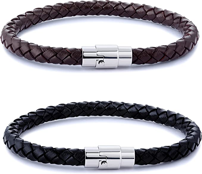 FIBO STEEL 2-3PCS Stainless Steel Braided Leather Bracelet is a great choice for both men and women. This set of bracelets is made from high-quality durable leather and is designed with a vintage braided rope pattern. The stainless steel magnetic box clasp makes it easy to put on or take off. Plus, FIBO STEEL offers a 90-day exchange or money-back guarantee, so you can be sure you're getting a quality product.