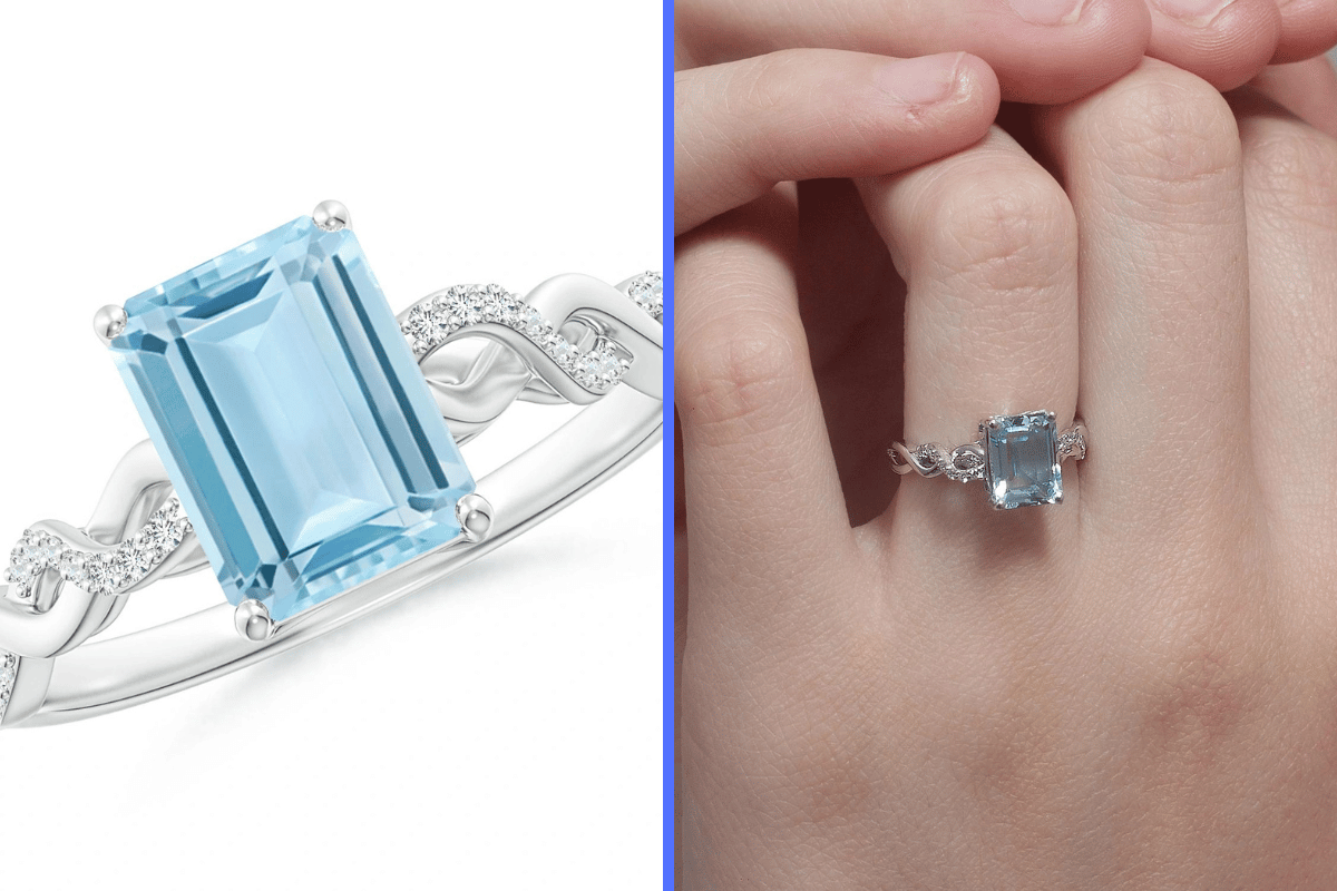 Emerald-Cut Solitaire Aquamarine Infinity Twist Ring