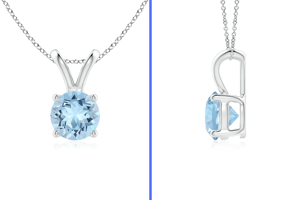 This aquamarine pendant is crafted with the highest quality materials to ensure it will stand the test of time. The aquamarine is heated to enhance its beauty and the pendant is made with 14K white gold but is available in all colors of gold, platinum and sterling silver. Plus, the V-Bale Round Aquamarine Solitaire Pendant is a great gift for any occasion as it will add a touch of glamour to any outfit. Tap HERE to order your own V-Bale Round Aquamarine Solitaire Pendant today and show your loved one just how much you care!