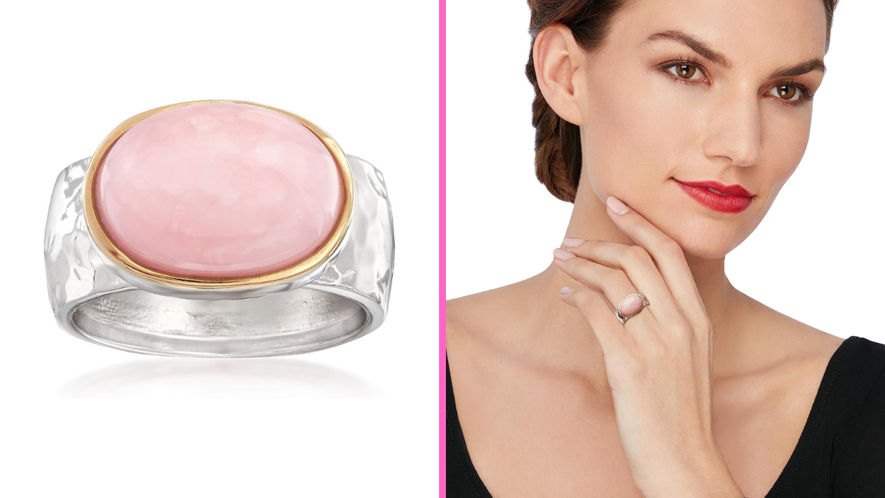 For the perfect statement piece, look no further than the Ross-Simons Pink Opal Ring. This breathtakingly beautiful piece of jewelry is crafted from luxurious sterling silver and 14K gold, featuring an oval-shaped pink opal in the center. The hammered and polished sterling silver and 14K gold band add to its stunning design, making it a piece you will want to show off. Plus, this opal ring comes with a jewelry presentation box and a 30-day, 100% money-back guarantee.