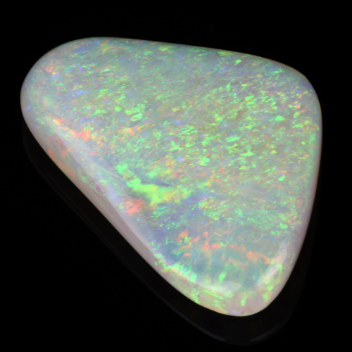 White opal, the most common opal features a white background with pinpoint flashes of color.