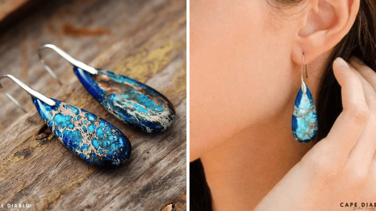 We are in love with the Intense Ocean Energy Earrings from Cape Diablo! This handmade piece of jewelry is made with Imperial Jasper, a beautiful and rare stone. It is set in zinc alloy and is about 4.5-5cm in size. The earrings are perfect for anyone who wants to add to their earring collection. By wearing these earrings, you can be reminded of the power of the ocean and the natural rhythm of life.