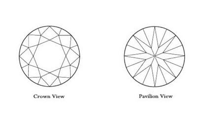 In a well-cut diamond, the facets on the pavilion acts as mirrors. Light should enter the stone and be entirely reflected back out the crown producing a beautiful and even distribution of light.