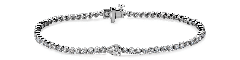 The center pear diamond is 0.32-carats and I in color, SI2 in clarity. The side round diamonds total 2.66 carats, I in color, and SI2 in clarity. All of the diamonds are set in prong settings for added beauty and security; the bracelet is seven inches long. Show yourself or someone you care some love and consider this bracelet. Click HERE for additional details.