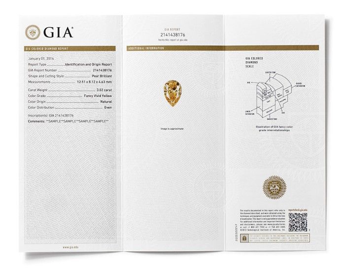 Each fancy yellow diamond should be accompanied by a GIA Colored Diamond Report that indicates the color grade as well as the origin of the color.