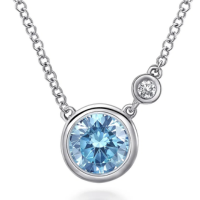 925 Sterling Silver Blue Topaz and Diamond Pendant Necklace - Click HERE to check Price