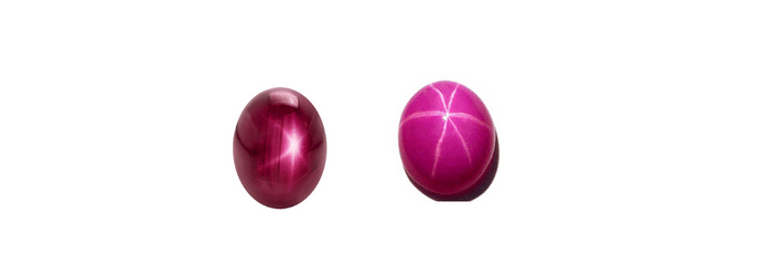Star rubies are rubies that exhibit a six rayed star pattern on their surface. Stones must be cut "en-cabochon" smooth domes to bring out the star. The star pattern is caused by rutile fibers within the stones.