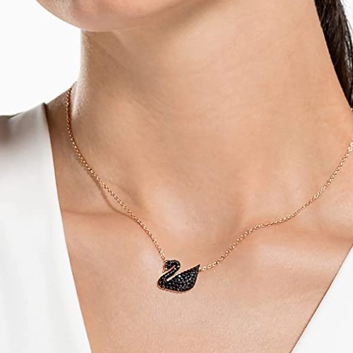 The Swarovski Swan Collection Pendant for women features a beautiful black crystal swan on a delicate rose-gold plated chain, making it a versatile and timeless accessory suitable for any occasion.