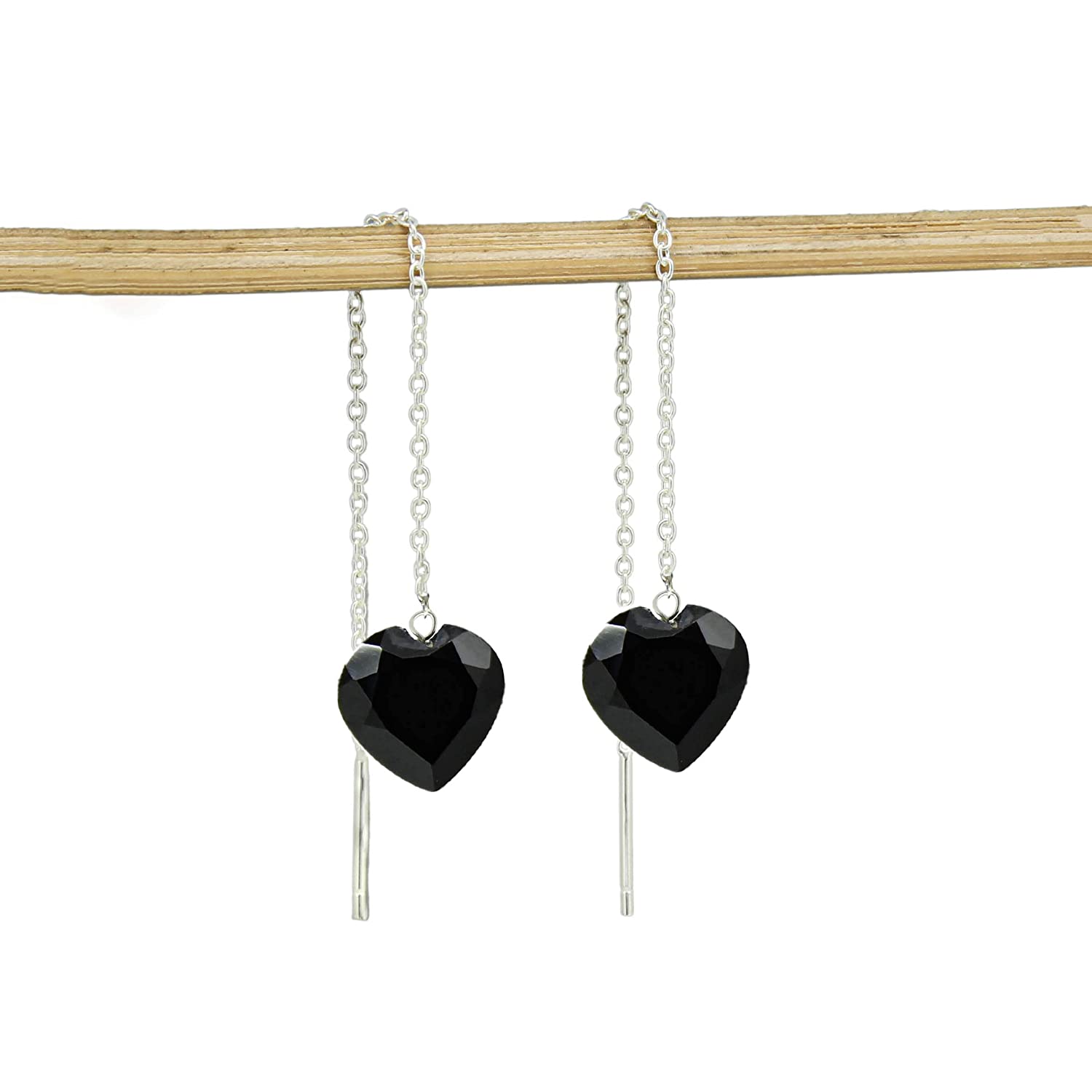 GemInspire Natural Black Spinel Heart Threader Earrings