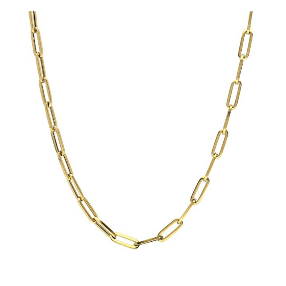 14K Yellow Gold 4mm Paperclip Elongated Chain Necklace 16"