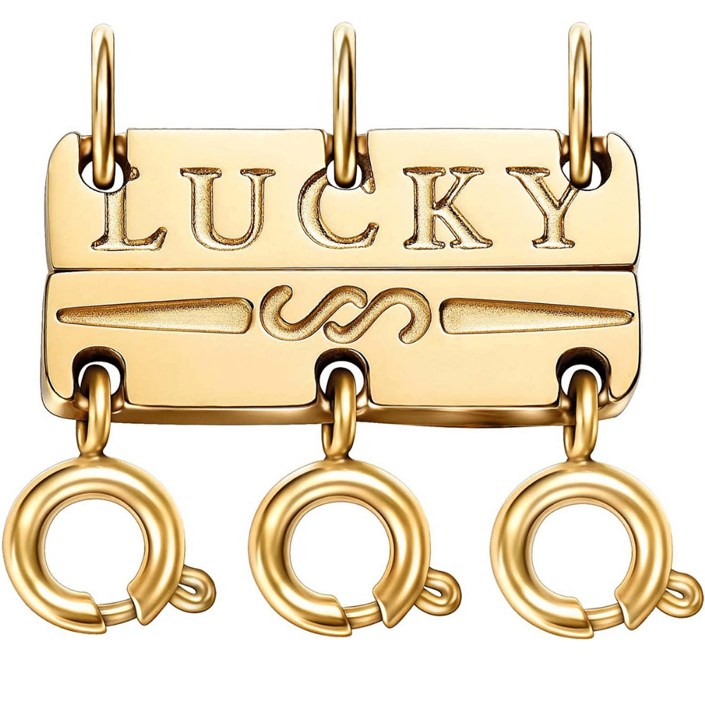 To ensure your chains don't tangle, you can purchase a nifty little jewelry hack called a "necklace layering clasp"