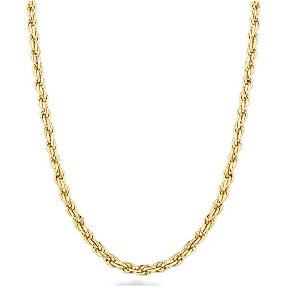 Miabella Solid 18K Gold Over Sterling Silver Italian 2mm, 3mm Diamond-Cut Braided Rope Chain Necklace