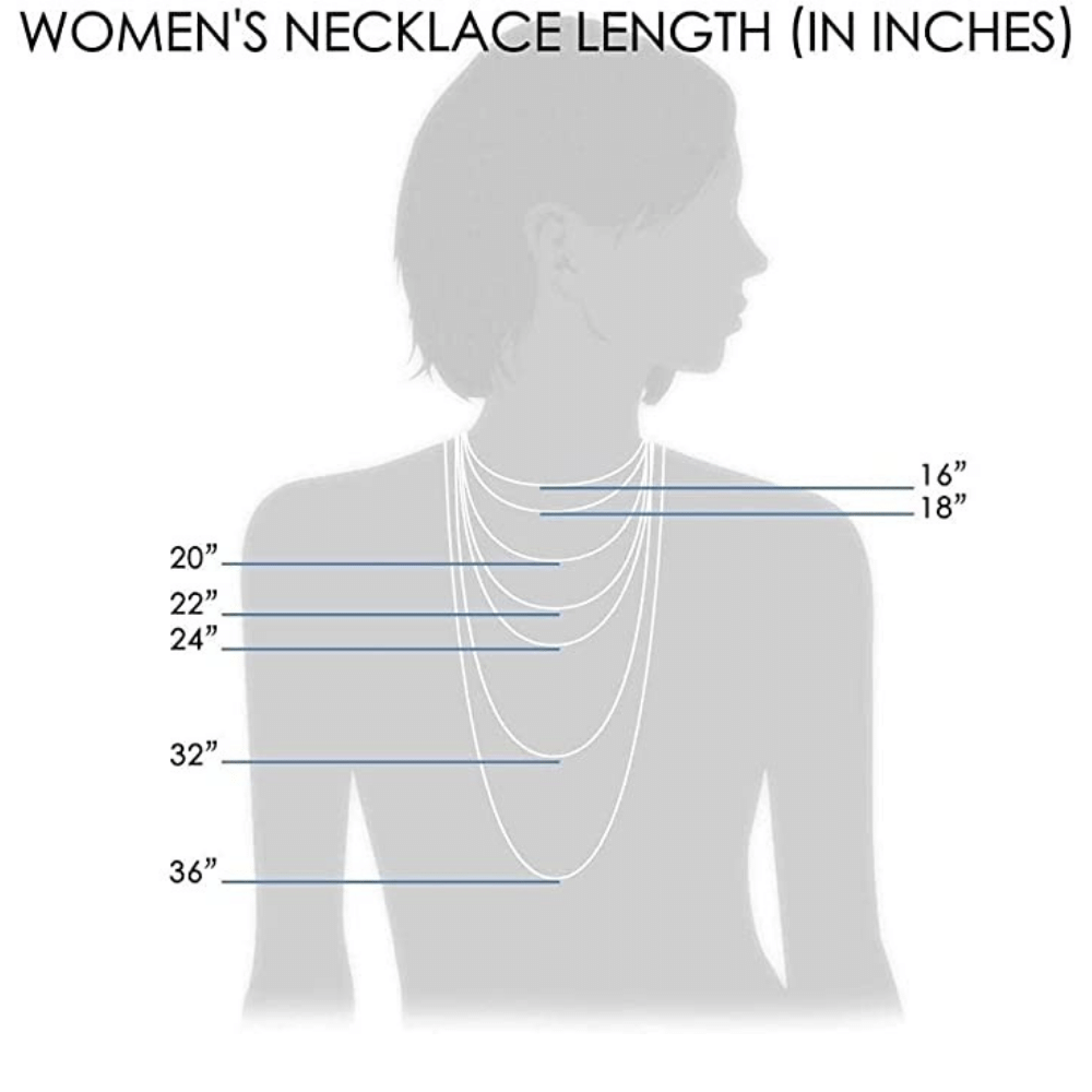 If you prefer to have yours chains evenly spaced, the chart below will help you decide the lengths that will work best for you, don't forget to take into consideration the neckline you want to wear, but you don't want to look too perfect either..