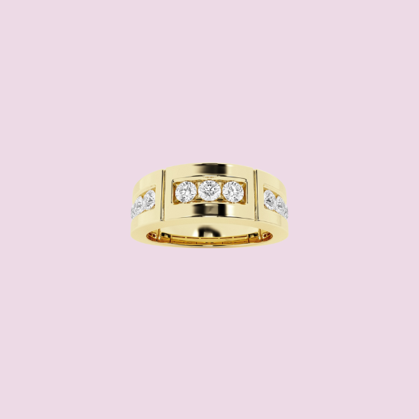 This 1-Carat Lab Grown Diamond Men's Wedding Band is the perfect choice for anyone looking for perfection. The 9 round diamonds are colorless and near-colorless (F-G), SI1 or better clarity, and excellent to very good cut, set in a 14K yellow gold band. With its high-polish and sparkling diamonds, this ring is a stunning combination of sophistication and style. Plus, it's perfect for milestone occasions such as a wedding or anniversary.