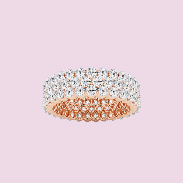 Turn heads with this beautiful 3-Carat TW Multi-Row Round Lab Grown Diamond Eternity Band. This diamond band features 75 colorless and near-colorless lab-grown diamonds for a total weight of 3.00 carats in a stunning prong setting. The eternity band is crafted of 14K rose gold and makes a sophisticated and stylish statement.