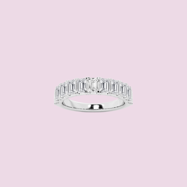 Shine bright with the concentric facets of this elegant emerald-cut diamond band. Crafted from lab-grown diamonds, this 2-carat TW wedding band is stunningly beautiful, with a long vertical row of emerald-cut diamonds creating a hall of mirrors effect that will leave you breathless. This diamond band makes a perfect base for a vintage-inspired ring stack, but still creates a sophisticated impact when worn solo.