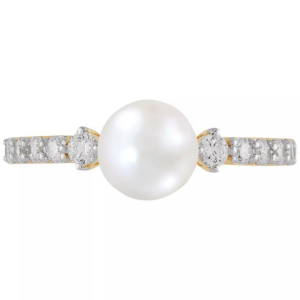 Honora creates beauty with this cultured freshwater pearl ring, set on a shank adorned with sparkling round diamonds. They are cultured pearl experts and select only the finest quality pearls.