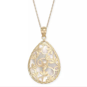 Mother-of-Pearl Flower Filigree 18" Pendant Necklace in 14k Gold