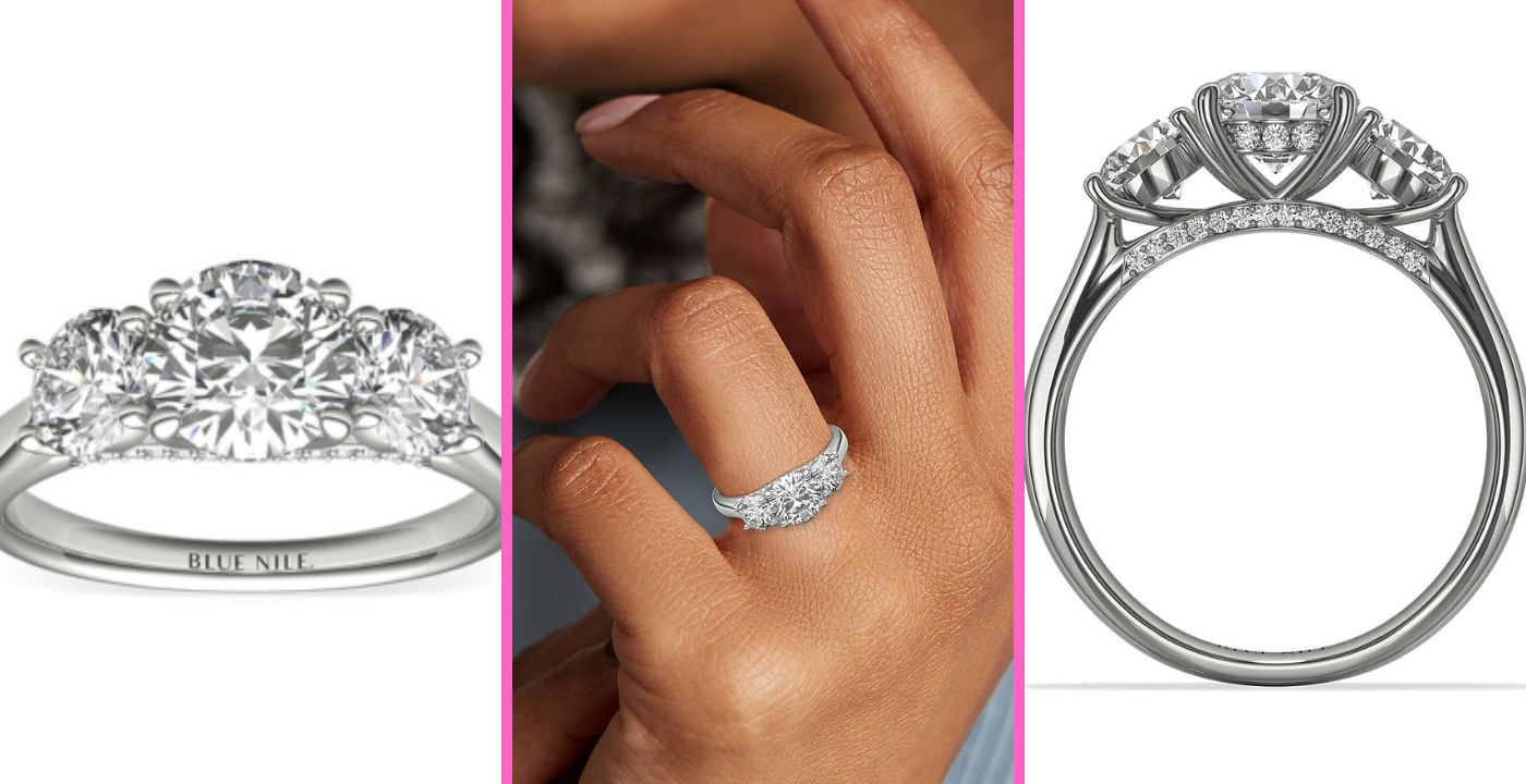 Tap the button above to order your Three-Stone Pavé Gallery Diamond Engagement Bling 😇 today!