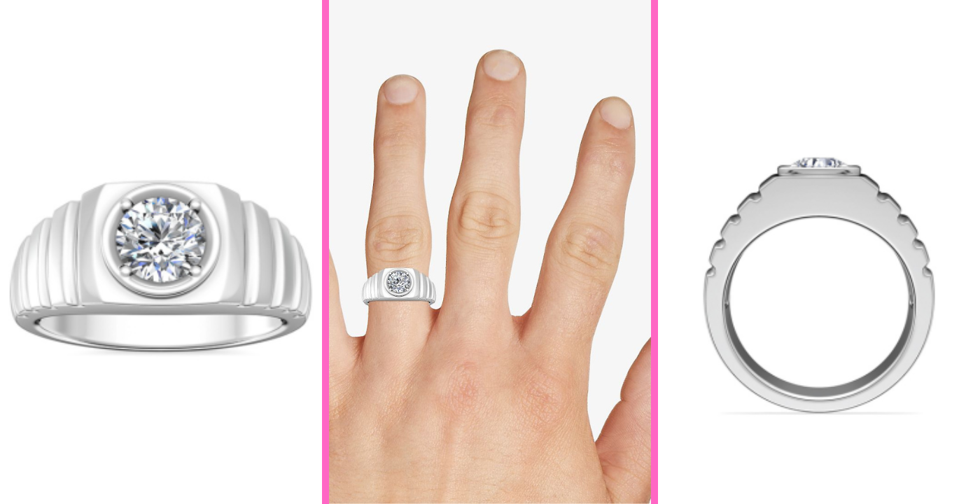 Men's Ridged Solitaire Engagement Ring is also rhodium plated, which adds an extra layer of protection and shine. Plus, if you have any questions or need help finding the right size, you can get answers day or night by chatting with their fantastic customer service team. You can also schedule a virtual appointment. And if you're looking for something a bit different, they have other so many additional options.
