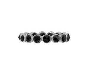Sethi Couture offers this unique black diamond rose cut band ring. This full circle ring can be ordered to size and is available in 18K white or yellow gold. Fantastic in a stack or on its own as a wedding ring.