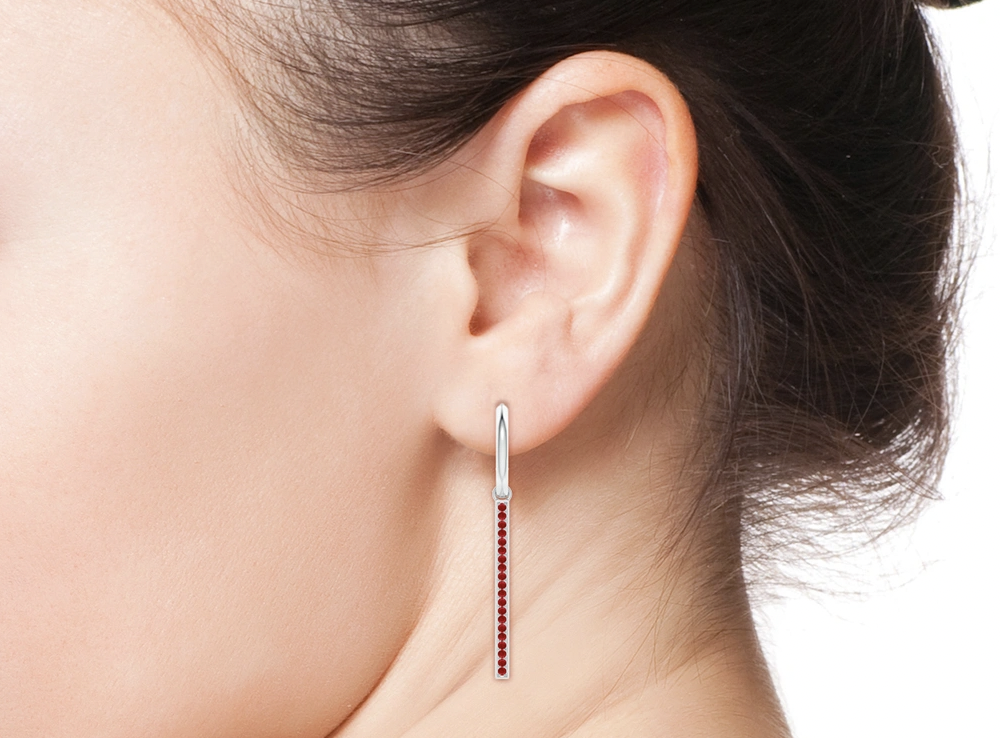 These eye-catching earrings come with a Certificate of Authenticity, so you can be sure they are the genuine article. Plus, the rubies are natural and have been heated to enhance their color and clarity. The approximate total carat weight is 0.60, and the "best" quality grade or you can select from Good, Better, or Heirloom quality. So why wait? You know you want these! So go ahead and click HERE and order your Hinged Hoop Dangling Ruby Bar Earrings today!