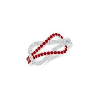 This beautiful Encrusted Ruby and Diamond Infinity Knot Ring is the perfect way to show your love and commitment. Crafted with 14k white gold and set with 32 striking red rubies and 36 brilliant diamonds, this exquisite ring is sure to turn heads. The diamonds and ruby gemstones are prong-set in an elegant infinity knot design, which symbolizes infinite love. Plus Anagra offers free engraving!