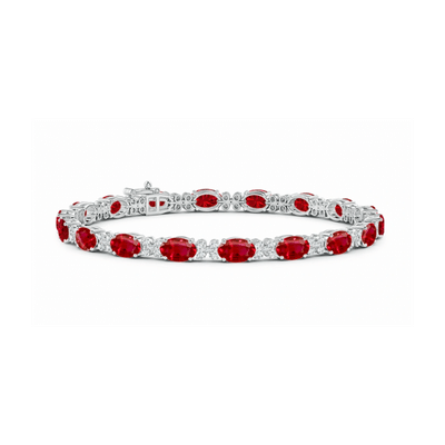 This Oval Ruby Tennis Bracelet with Diamonds is perfect for any occasion. Whether you're looking for something special for a loved one or treating yourself, this bracelet is sure to turn heads. It comes with a Certificate of Authenticity and is 7 inches long with a bracelet catch closure. Plus, the length makes it easy to adjust for any size wrist. So if you are looking for a very special and important gift, click HERE to purchase the Oval Ruby Tennis Bracelet with Diamonds today!