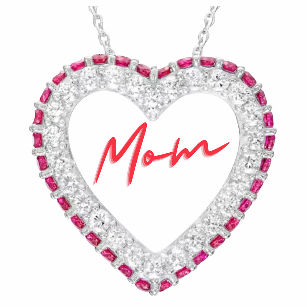 Ruby Outer Edge Heart Outline Pendant - Show your Mom your eternal love by adding this special Lab-Created White Sapphire and Ruby Heart in Sterling Silver. Guaranteed to bring joy to any mom's face! We love how the lab-created rubies lay down horizontally covering the entire frame of the silver heart.