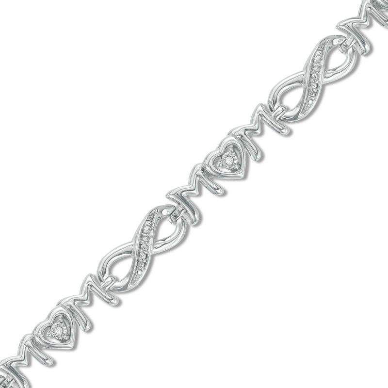Diamond Accent Alternating "MOM" Infinity Link Bracelet in Sterling Silver