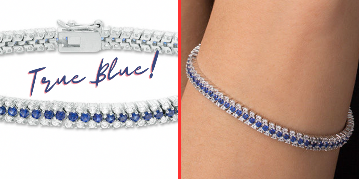 Or perhaps you’re looking for something truly unique? Try the fabulous triple-row sterling silver bracelet packed full of blue sapphires and white sapphires with a ruby heart border. Classic and alluring, this fashion bracelet takes your evening looks from ready to resplendent. Crafted in sterling silver, this luxurious design showcases a row of 2.0mm lab-created bright blue sapphires bordered in ribbons of 1.5mm lab-created shimmering white sapphires. Buffed to a brilliant luster, this 7.25-inch bracelet secures with a box clasp.