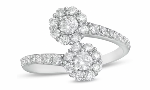 Bypass Ring: For a classic look that never goes out of style, try the 1-carat total weight Lab-Created diamond ring featuring an eye-catching design in 14K white gold and set with beautiful pavé diamonds. Diamond quality, F Color/SI2 Clarity, and perfectly cut for maximum sparkle! This ring will look amazing on her third finger!