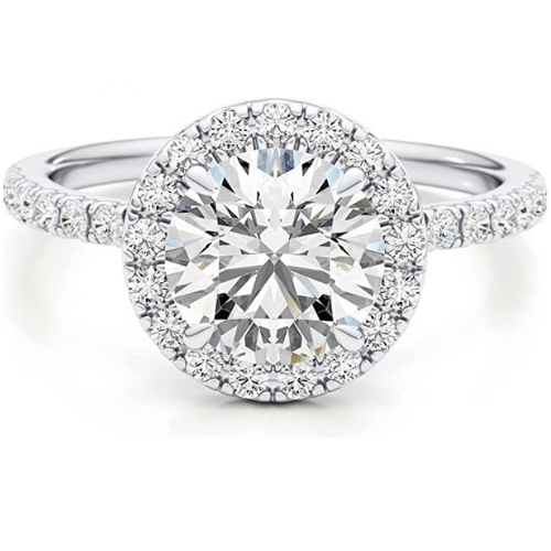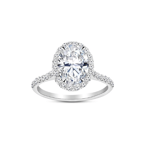 This classic halo style setting is 14K white features a 1.00 carat center stone and is surrounded by natural diamonds (0.75TW) in the band. The ring is available in yellow and rose gold. Accompanied by an IGI certifying that it is a lab-grown grown diamond. Because the center stone is lab-grown, it requires a gemologist with specialized equipment to distinguish it from a mined diamond. Click below for additional details.