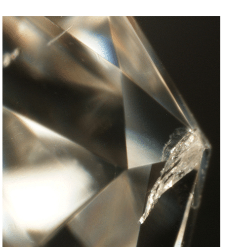 is defined as a gem's ability to resist breaking or chipping. Both of these definitions are important when comparing diamonds to diamond simulants. What people are very surprised to hear, is that diamonds are not the toughest gem material (that would be Jade) so it's possible to chip or even break a diamond.