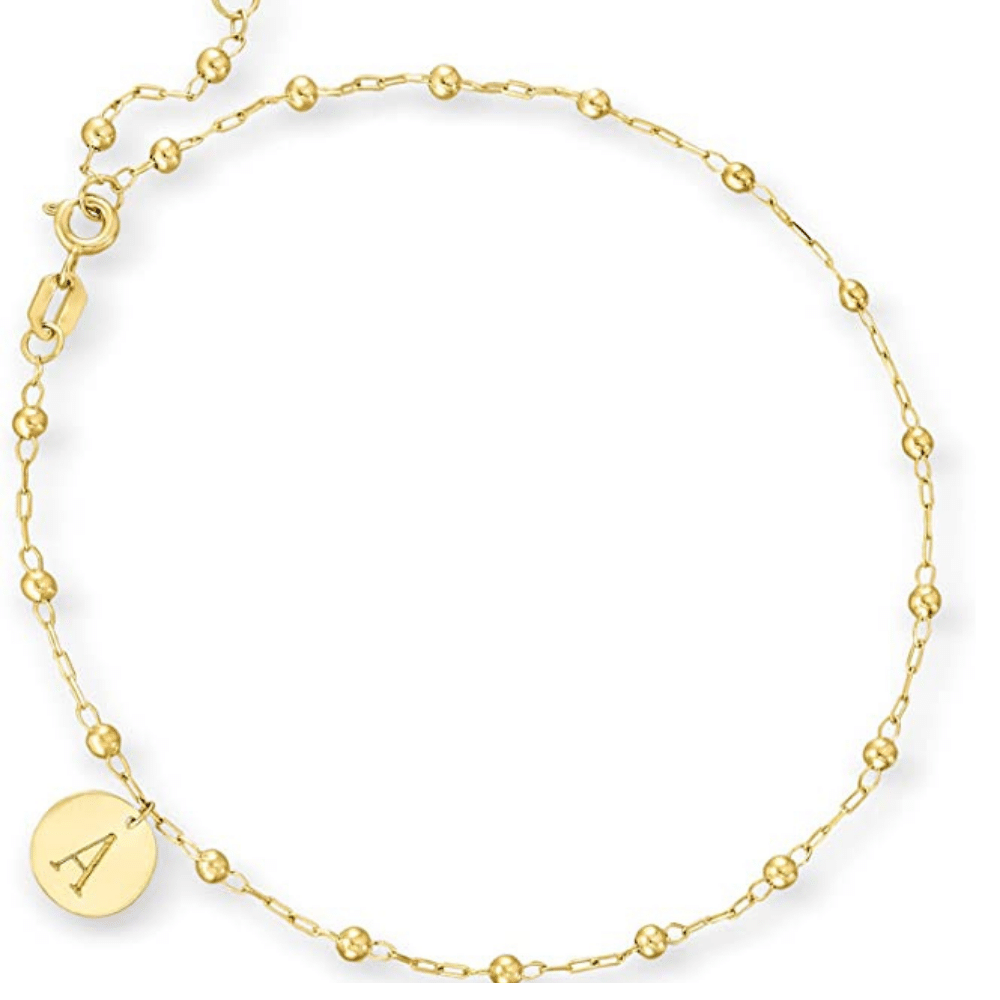 What we love about this product: Looking for a subtle and elegant design? This 14K yellow gold bead anklet may be just the right one. This gleaming high-polished design features an initial tag to emphasize your individuality.