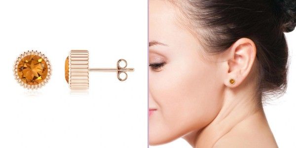 Bezel-Set Solitaire Round Citrine Beaded Halo Studs