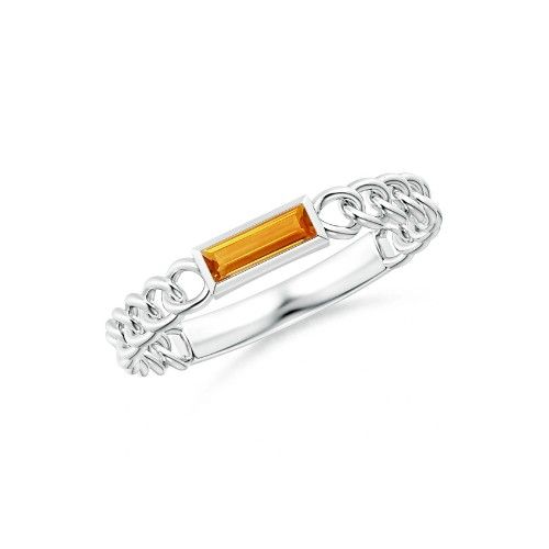 Bezel-Set Baguette Citrine Solitaire Curb Link Ring